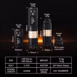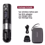 Professionaalne juhtmevaba pöörlev tätoveerimispulk 2400 mAh akuga ja LED-ekraaniga. Pakub täpsust, liikuvust ja pikaajalist töökindlust keha kunsti jaoks.