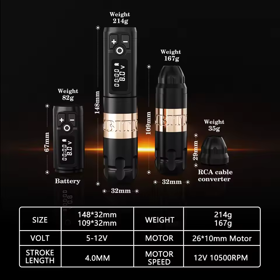 Ambition Soldier Wireless Tattoo Machine on loodud kunstnikele, kes hindavad vabadust ja töökindlust. Võimas 2400 mAh kaasaskantav aku tagab pika tööaja ja stabiilse jõudluse. Tugev pöörlev mootor töötab sujuvalt ja madala vibratsiooniga, muutes masina sobivaks nii kontuurimiseks, varjutamiseks kui ka värvitööks. Ergonoomiline pliiatsi stiilis disain pakub mugavust ka pikkadel sessioonidel, samal ajal kui LED-ekraan kuvab selgelt aku taset ja pinget. Elegantse hõbedase viimistlusega masin ühendab endas stiili ja professionaalsuse.